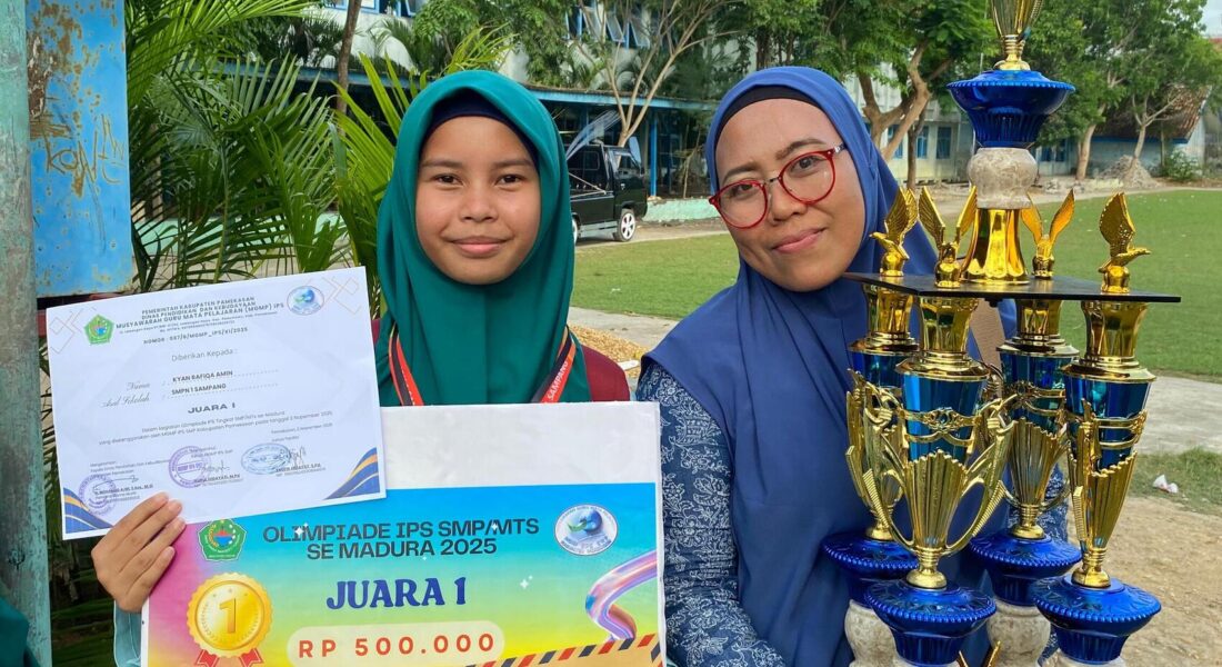 PAMEKASAN – Kyan Rafiqa Aminia, seorang siswa dari SMPN 1 Sampang, berhasil meraih juara 1 dalam Olimpiade IPS se-Madura yang diselenggarakan di SMPN 1 Pamekasan pada Minggu, 2 November 2025.